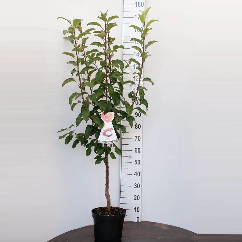 De Appel 'Malus domestica Gala' is een fruitdragende boom die jouw tuin sierlijk verrijkt met witroze bloemen in de bloeiperiode van april en mei. In de herfstmaand oktober kan je genieten van de oogst van de roodgele, zachtzure appels die bekend staan om hun stevige vruchtvlees. Een goede oogst wordt bevorderd door de boom naast een ander appelras te planten, omdat deze appelsoort niet zelfbestuivend is. De 'Gala' appel is eetbaar en biedt daarmee niet alleen een esthetische, maar ook een praktische toevoeging aan je tuin. Toch verliest de 'Gala' zijn blad in de winter en is daarom niet het gehele jaar bladhoudend.