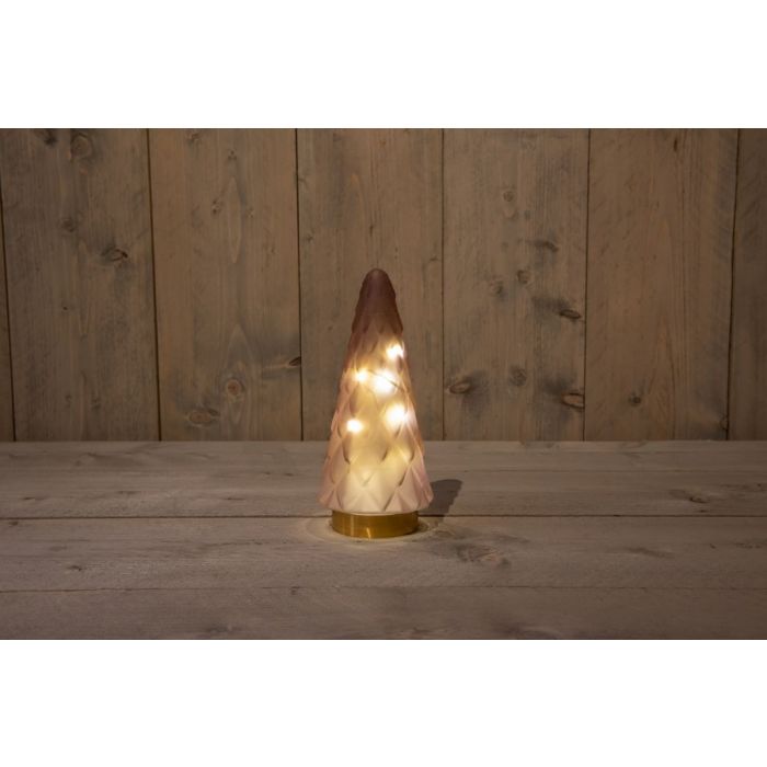 B.O.T. GLAZEN BOOM MAT ROZE 10L MET GOUDEN VOET 10.5X24.5CM 3XAAA ON/OFF/6U TIMER