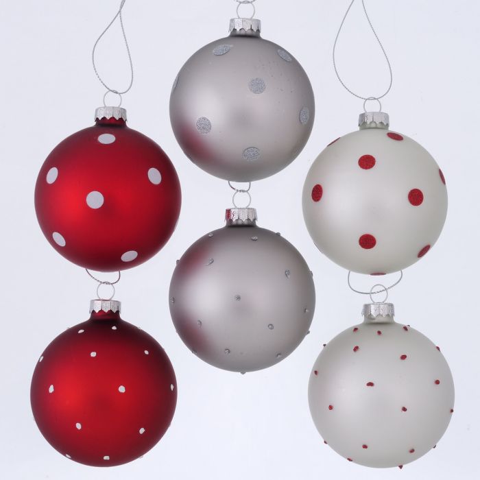 | Plantnaam | Kerstbal Clara, 6 assortie Toonbankdisplay, D 8 cm, gls gelakt, Gestippeld, Veelkleurig, Print rondom |