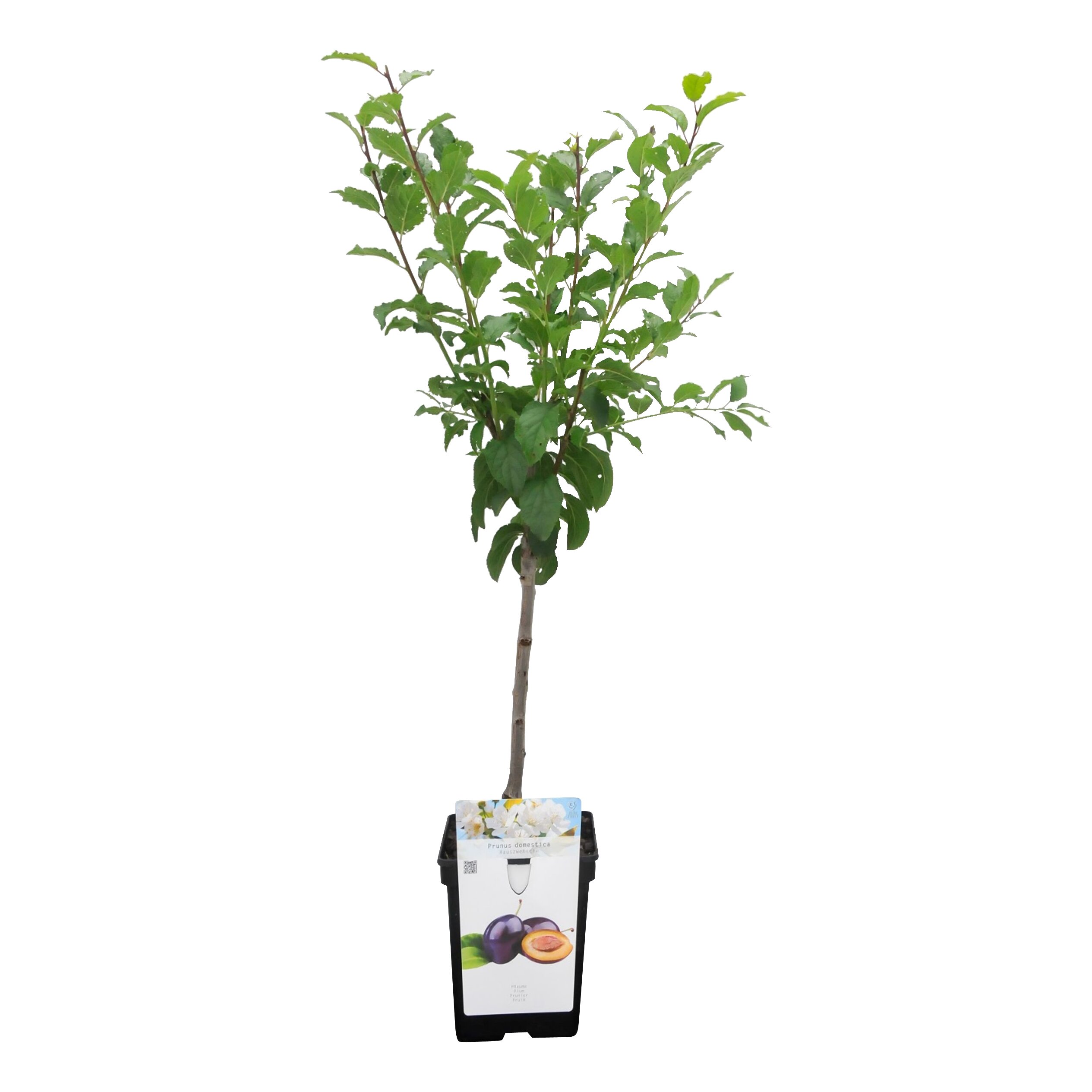 De Prunus domestica 'Hauszwetsche' mini is een compacte versie van de bekende pruimenboom, ideaal voor wie minder ruimte heeft. Deze boom is speciaal ontwikkeld om op een klein oppervlak zoals een patio, terras of balkon geplaatst te worden. De mini pruimenboom geniet het liefst van een zonnige plek, wat essentieel is voor het rijpen van de pruimen. Deze boom is veredeld op een onderstam die de groei beperkt, waardoor je niet bang hoeft te zijn voor een uit de hand gelopen tuinproject. Je kunt genieten van langwerpige, blauwe pruimen met een groen/geel vruchtvlees die rond oktober geplukt kunnen worden. Vergeet niet dat deze boom niet zelfbestuivend is, dus je hebt een andere pruimenboom nodig om vruchten te kunnen oogsten.