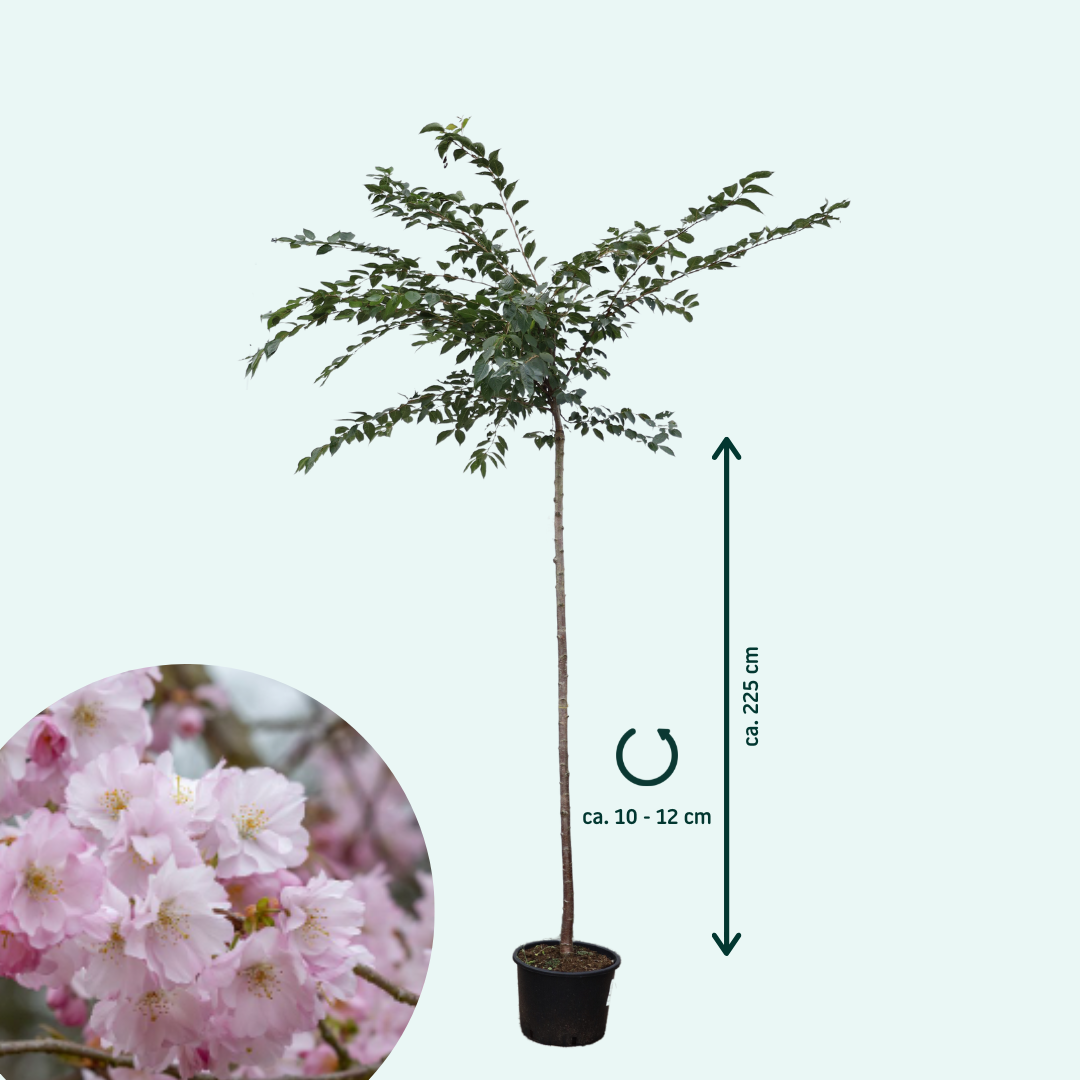 Ontdek de Prunus 'Accolade', een opvallende Japanse sierkers met een unieke horizontale groeiwijze. Deze boom valt op in maart en april met zijn overvloed aan lichtroze, geurige bloemen, die het begin van de lente in uw tuin markeren.