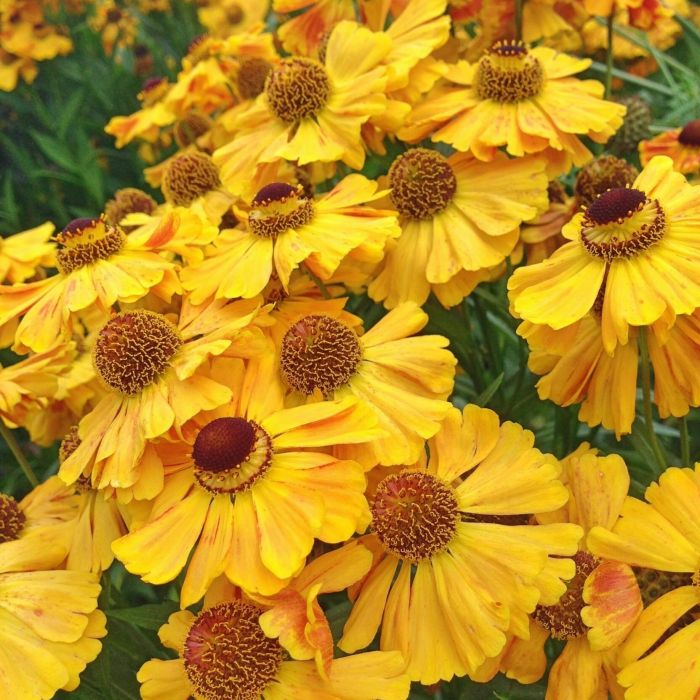 Helenium bigelovii 'The Bishop', beter bekend als zonnekruid, is een charmante toevoeging aan je tuin die niet onopgemerkt zal blijven. Deze bladverliezende vaste plant siert je tuin met zijn opgaande habitus en enkelvoudige lansvormige bladeren die licht behaard zijn. Van juni tot september geniet je van de gele margrietachtige bloemen, die een opvallend donkerbruin, bolstaand centrum hebben. De plant verliest in het najaar zijn bladeren en gaat ondergronds voort met groeien. Met de lente in aantocht maakt het zonnekruid zich klaar om opnieuw te bloeien en je tuin te verfraaien.